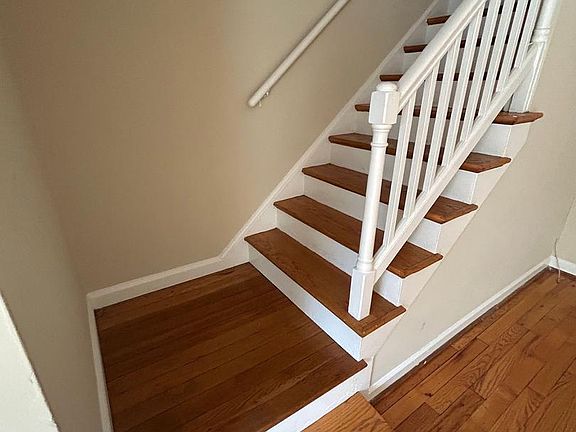 Hardwood floors on the main and upper levels, carpet in the basement rec room and den, built-in microwave, dishwasher, disposal, and in-unit washer/dryer.