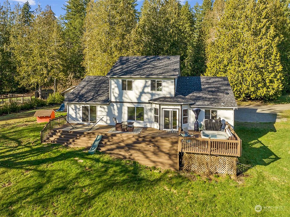 Enjoy Johnson Point Saltwater Breezes in Stunning Updated 4BR on 4.7 acres! Vaulted main-floor luxury barn-door primary suite with hex tile, sauna & 3-head rainshower has slider opening to hot tub on deck overlooking wooded oasis. Warm-wood-toned vinyl plank floors & woven wood lighting mingle with modern farmhouse touches of shiplap & brushed gold accents. Quartz waterfall peninsula seating in counter-to-ceiling tiled kitchen with gas range & 4-door fridge. Flexible living options with main floor office/den & upstairs bonus rm. Welcoming covered porch next to stained concrete 2-car garage w/playhouse/storage loft. 15 min to Costco or downtown Olympia, 5min to marina & less than 30min to JBLM. Easy RV/boat parking, 2yr old roof & no HOA!