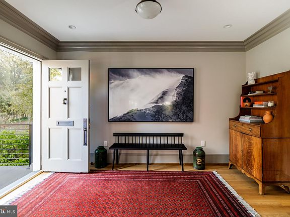 Set amidst mature trees and manicured grounds in the heart of beloved Somerset, 4709 Dorset Avenue is where storied architecture meets modern refinement—an estate that whispers of beauty, comfort, and enduring style. Behind its Victorian-inspired façade lies a collaboration between GTM Architects, Sandy Spring Builders, Zoe Feldman Design, and lush landscaping by Fine Earth and McHale. Automatic gates reveal verdant grounds, where a walkway of oversized flagstone slabs leads to the towering glass front entrance. Inside, the grand foyer sets a refined tone with Farrow & Ball hues, an Urban Electric fixture, and wide-plank white oak flooring. A hand-plastered feature wall by Nicolette Atelier, Chesneys limestone mantel, and custom reading nooks define the cathedral-ceilinged formal living room. The family room features accordion doors opening to a heated all-season porch with a double-sided gas fireplace. The dining room is flanked by Urban Electric sconces and framed by floor-to-ceiling gridded metal windows. Adjoining it, the butler’s pantry features a honed marble counter, antique mirror backsplash, hammered brass sink, and Sub-Zero wine storage. Nearby, the kitchen offers a commercial-grade appliance suite, custom inset cabinetry, Urban Electric lighting, a Shaw’s England farmhouse sink, thick-edge marble countertops, and Petite brass hardware—equal parts gathering space and culinary showpiece. The family entrance leads to a well-appointed mudroom with built-in lockers and a wallpapered powder room with a Waterworks mirror. Upstairs, the serene primary suite features automated blackout blinds, private backyard access, and a generous walk-in closet. Its spa-inspired bath includes radiant heated floors, Waterworks fixtures and tile, a body jet shower, and private water closet. Three additional en suite bedrooms feature custom millwork, tailored finishes, and bespoke storage. A well-appointed laundry room with quartzite countertops completes the level. The lower level offers a spacious rec room with a quartzite wet bar, temperature-controlled Porcelanosa-tiled wine room, and a mirrored fitness studio. A fifth bedroom with full bath and walk-in closet adds flexibility. Additional laundry and utility rooms are seamlessly integrated. A rare amenity, the detached garage includes a fully outfitted guest suite with private entrance, kitchenette, full bath, Wi-Fi, Alpha shelving, and ample storage—ideal for guests, remote work, or multigenerational living. Outdoors, the flagstone patio features a full outdoor kitchen with built-in Coyote grill and fridge. Infratech heaters and glowing Bevolo lanterns transform the porch into a year-round retreat, while a bamboo wall ensures privacy. A vegetable garden by Love & Carrots, manicured lawn, turf area, smart irrigation, and architectural lighting round out the outdoor experience. A true smart home, the property includes Lutron and Sonos systems, Vintage Home security with spotted cameras, dual 200-amp panels, and layered HVAC, water treatment, and solar solutions. Bounded by Kenwood, Friendship Heights, the Chevy Chase Club, and Bethesda Row, this is one of the Capital Region’s most sought-after locations. Timeless, elegant, and masterfully crafted—4709 Dorset Avenue is the poster child for tasteful luxury.