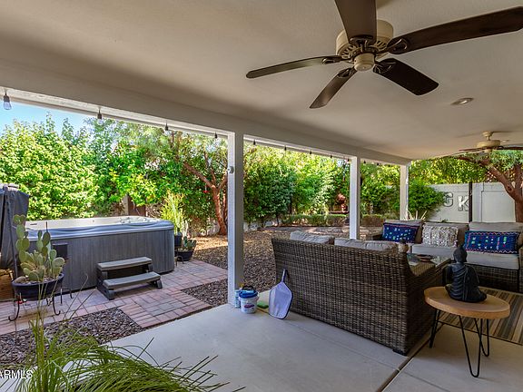 The backyard oasis is complete with a beautifully landscaped, easy-to-maintain garden, luxurious hot tub and complete with a tranquil fountain. The extended covered patio is equipped with lighting and fans, creating the perfect atmosphere for nighttime entertaining.