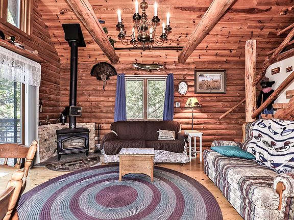 Full log chalet on Third Black Lake! House comes fully furnished and turn key. Main floor features nice open living room-kitchen, two bedrooms and a full bath, plus a lakeside 3 season room! Upstairs loft (3rd bedroom) overlooks the living area and beautiful lake views. The unfinished walk out basement has plenty of room for Rec room, another bedroom and storage. Large utility room with washer and dryer plus a finished full bathroom. Newer forced air furnace (2019) and Water Heater (2017) and septic tank (2025). Quaint older cabin currently being used as storage sits lakeside next to the home. Close to all the Iron County snowmobile/ATV trails.