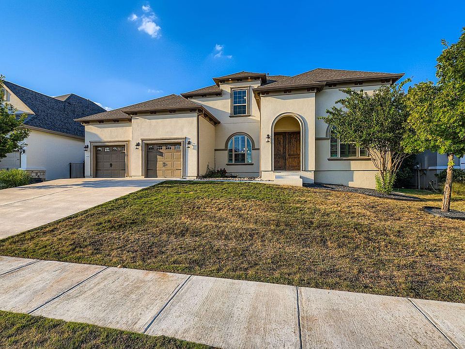 Beautiful 2019 Toll Brothers home in the highly sought-after Travisso community. This 2-story residence offers 4 bedrooms, 4.5 bathrooms, and a 3-car garage across 3,726 square feet on a quarter-acre lot. The open-concept floor plan features a two-story great room with fireplace, a gourmet kitchen with custom cabinetry, oversized island, and stainless steel appliances, plus a dedicated office with French doors. The primary and guest suites are conveniently located on the main level, while the second floor includes a spacious bonus room and additional en-suite bedrooms. Upgrades include hardwood flooring, plantation shutters, epoxy-coated garage floor, water softener, reverse osmosis system, and porcelain tile on the entry and patio. The backyard offers a covered patio and professional landscaping. Travisso amenities include a clubhouse, fitness center, resort-style pool, and hiking trails, all within Leander ISD. Refrigerator and Washer/Dryer have been ordered and will be installed within 2 weeks.