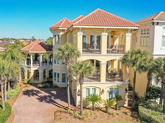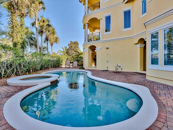 1st Tier Mediterranean villa with sweeping Gulf and lake views and a rare, full-size heated pool and spa in exclusive, guard-gated Destiny by the Sea. Recently updated by Ono Horn Design in today's neutrals and located on one of DBTS's largest lots. The home''s strategic octagonal design receives a remarkable amount of natural light, offers incomparable 360-degree views, and maximizes energy efficiency. Never rented and immaculate, vacation rental projections top $159K annually. This home commands fresh air space with a record 7 balconies. The kitchen features the axioms of a gourmet kitchen - granite counters, stainless appliances, plenty of workspace, and seating. Plus, its octagonal shape and see-through glass cabinets ensure unobstructed views. An elevator services all three floors.