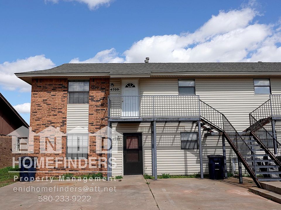 4709 Springridge is an upstairs 2 bedroom, 1 bath apartment near Walmart on the west side. This apartment comes with a stove, refrigerator, dishwasher. There are hookups in the unit for your washer and dryer. Please no pets or smoking. Call Enid Homefinders for more info or stop by our office at 802 W. Maine, suite A in Enid, OK 73701.