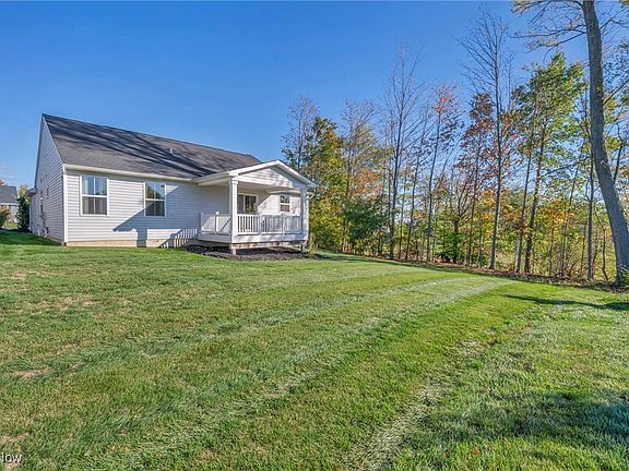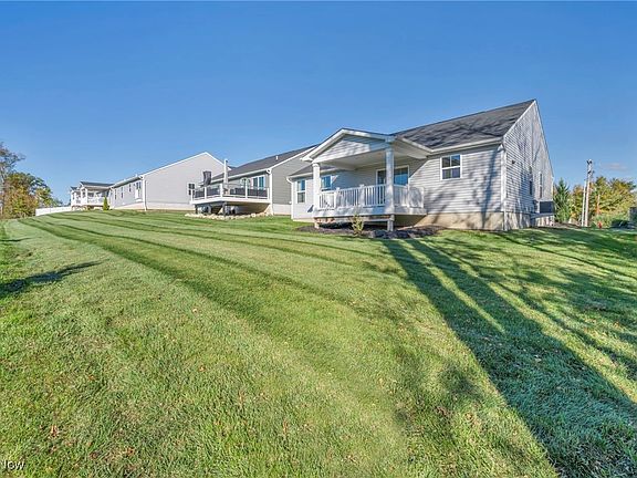 Welcome to 471 Bates Avenue where modern comfort meets effortless, maintenance-free living. This former model home has never been lived in and showcases thoughtful design and quality finishes throughout. The Craftsman-style ranch features a charming stone and board-and-batten exterior with a covered composite porch perfect for morning coffee or quiet evenings outdoors. Step inside to an open-concept floor plan that seamlessly connects the kitchen, dining, and family room into one bright, inviting space. The kitchen is beautifully appointed with granite countertops, tile backsplash, pendant lighting, rollout trays, and stainless GE appliances. Custom blinds, three-panel modern doors, and luxury vinyl flooring add sophistication, while wide 3' door openings and lever handles enhance accessibility and ease of living. The spacious owner’s suite includes an elevated vanity, comfort-height toilets, and a walk-in shower. Both baths feature ceramic tile flooring, and the laundry room includes a utility sink for added convenience. A full basement with a rough-in for a future bath provides potential for added living space whether you envision a guest suite, hobby room, or fitness area.