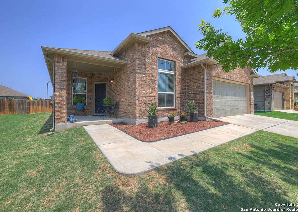 This roomy 4 bedroom 2 bath home was built in 2018 and is located in the peaceful neighborhood of Saengerhalle. Comfort is the name of the game for this split floor plan with two living areas. The large primary bedroom is towards the back of the house for privacy. Two additional bedrooms are down a hallway off the 2nd living area and convenient to the second bathroom and laundry room. Located in the front of the home, a 12 ft ceiling makes the fourth bedroom stand out and perfect to be used as a study/office or guest room. With granite countertops and a large island perfect for casual dining, the spacious kitchen is open to the dining area and large living area. An additional 10 x 20 concrete patio has been added to the covered back porch to provide additional outdoor living space. The front yard has two healthy and beautiful trees and there is an irrigation system in both front and back yards. New lighting and bathroom fixtures have been upgraded along with ceiling fans in main living room and all bedrooms. The interior walls have been freshly painted and waterproof laminate flooring has been installed in all bedrooms. The water softener is purchased and conveys. With easy access to the major cities of Austin and San Antonio, this home is conveniently located close to dining, shopping, entertainment and all businesses. Enjoy big city life with the small town feel of beautiful New Braunfels, Texas!