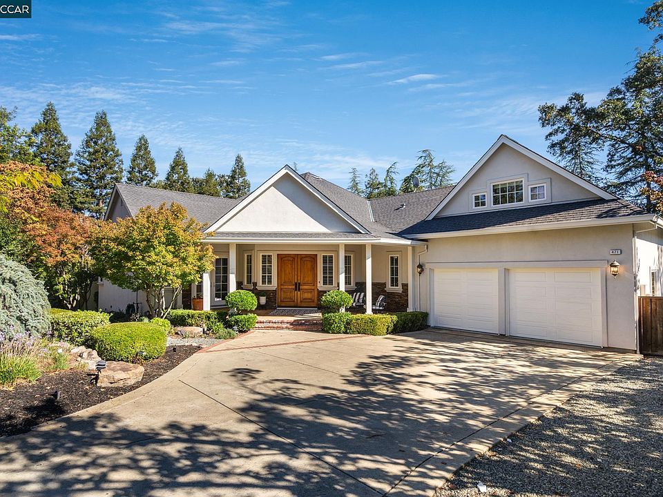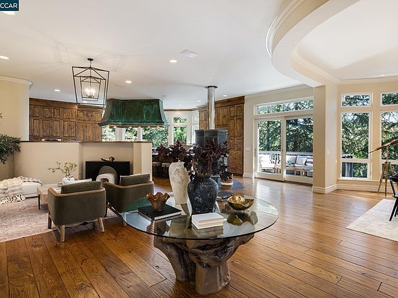 This stunning custom residence, built by renowned R&J Construction, rests on nearly half an acre surrounded by lush, mature landscaping. Designed for both entertaining and everyday living, the open-concept layout blends timeless craftsmanship with modern comfort. Originally owned by Franklin “Pete” Kistner—founder of the restaurant Pete’s Brass Rail & Car Wash—this home radiates warmth, character, and enduring charm. At the heart of the home, the chef’s kitchen captivates with a patinated copper vent hood as its centerpiece, complemented by rich custom cabinetry, striking green marble countertops, and a professional-grade Lacanche range featuring three ovens and two warming drawers. Perfect for gatherings, the oversized island with prep sink seats six. Built-in stainless steel appliances include double ovens, refrigerator, and dishwasher. A stone fireplace with integrated pizza oven anchors the open living and dining areas, leading to a spacious deck ideal for entertaining or quiet relaxation among the trees. The luxurious primary retreat offers deck access, a spa-inspired bath, and generous walk-in closet. The main level includes two additional bedrooms—one used as an office—and laundry room, while the upper level features a private bonus room or potential fourth bedroom.