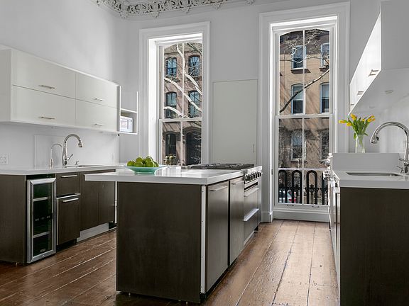 On a tree-lined street in Historic Cobble Hill, 471 Henry Street is a beautiful brownstone townhouse renovated and redesigned to blend the feeling of an historic home with amenities synonymous with luxury modern living. The Owner's Triplex is a magnificent home: three bedrooms, four bathrooms, a amazing kitchen designed by a Michelin-Star chef, a sprawling dining and living space, a full rear garden, elevated deck, and a finished basement.