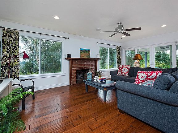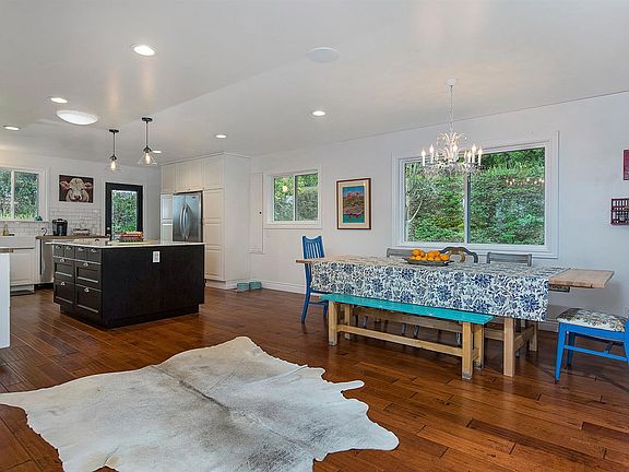 Lovely sunset views from charming renovated home that enjoys private & quiet setting on sunny side of Fitch Mtn. Large modern kitchen with spacious dining area that flows into the living room. Master suite has huge closet (was 3rd Bedrm) with laundry and modern bathroom. A gate provides access to the Healdsburg Golf Course. The home has a metal roof, new windows and sliding doors, a cozy covered patio for entertaining. All a mile to downtown.