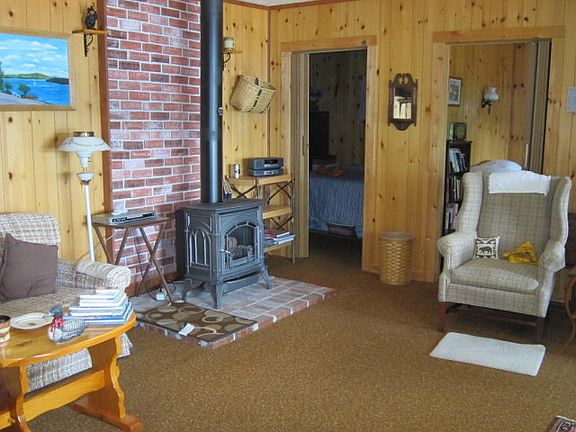 VACATION TIME-and this enjoyable 1st lake cottage offers a sunny location with 80' sandy lakefront and boathouse just across the road. Living/dining/kitchen, two bedrooms, new bath and covered porch. Let the fun begin. $315,000.