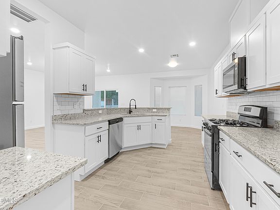Brand New Duplex! Great investment to occupy and rent other side! Super spacious! 3 bedroom, 2 bath with a host of desirable Modern Finishes & a large backyard! Hanging chandelier welcomes you into the entry foyer that opens up into 2 bedrooms & hall bath. Gourmet kitchen has white cabinetry w/modern hardware, stainless steel appliances, subway tile backsplash, granite counters, lots of recessed lighting, breakfast bar with separate breakfast area. Dining area & living room each have their designated areas. Owner's suite is zoned & boasts a spacious shower w/glass door enclosure & separate tub & includes a large walk-in closet. Utility room conveniently equipped w/cabinets for extra storage & a utility mop sink. Cold Refrigerated Air! Unit #B next door is also available for those investors looking for a great opportunity to rent them or live in one & rent other. Call to make your appt to view this spacious duplex!