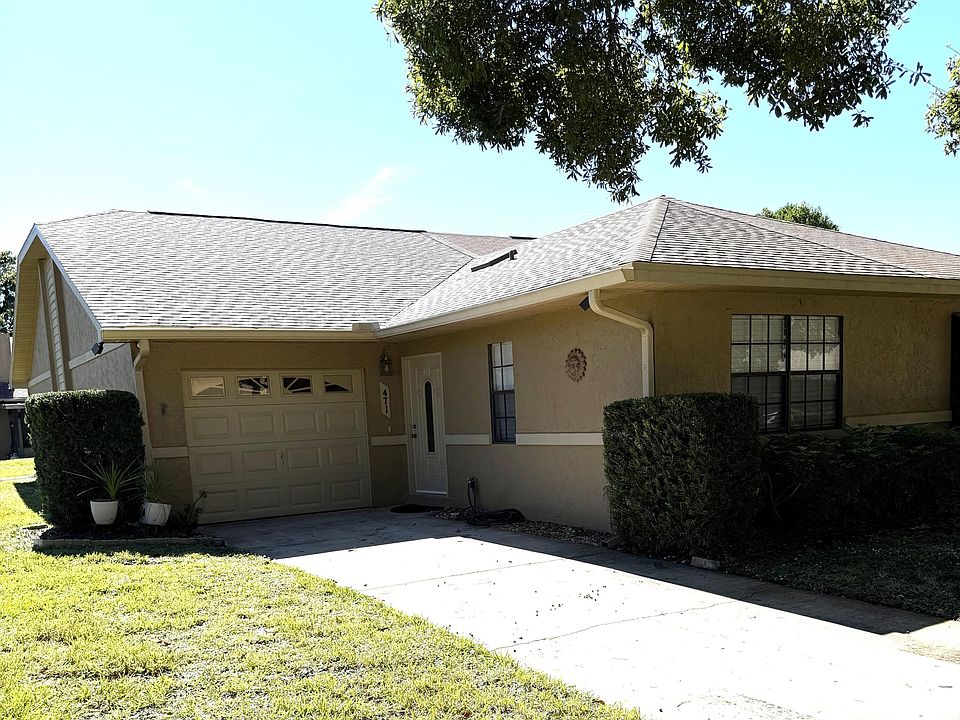 MOVE IN READY, impeccably maintained, single story home in desirable Arbor Ridge. This spacious 2 bedroom, 2 bath, 1 car garage end unit villa features split bedroom, open floorplan, cathedral ceiling with two great skylights, stunning wood-burning (functional) fireplace, roomy screened-in back porch (semi-private with neighbors fence) with easy access to Community tennis court and pool. Low maintenance tile flooring in living areas and LVP in both bedrooms. NEW hot water heater! Roof 4 yrs. HVAC 7 yrs, with 3 yrs remaining on FULL Parts and Labor TRANSFERABLE Warranty. All appliances convey - stainless steel kitchen appliances and dryer, 7 yrs; washer, 2 yrs. Home has operational security system and all equipment conveys; new subscription is all you need to transfer. Low HOA covers lawn care, sprinkler system, basic cable and Internet. Great location with easy commute to KSC/CCSFB, launch viewing, beaches, Birding, shopping, Orlando Airport and attractions. Make this YOUR HOME!