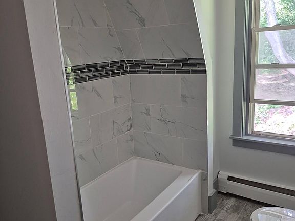 This 4 bedroom townhouse has just been completely redone! There are 3 bedrooms upstairs and one on the first floor. Enjoy lots of hardwood flooring, a new kitchen with lots of cabinet space and stainless steel appliances, a modern new tiled bathroom, and an unfinished basement with laundry hookups.