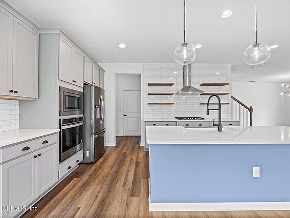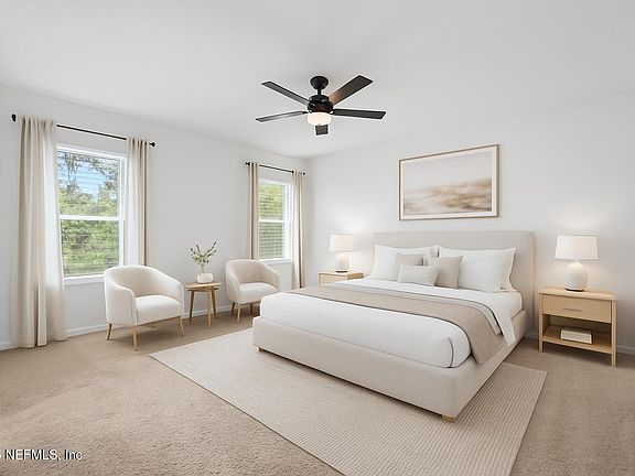 This beautifully maintained home truly has it all-inside & out! From the welcoming front porch and manicured front yard to your own private oasis featuring a huge covered lanai with an extended paver patio overlooking tranquil preserve views, this home is perfect for relaxing evenings, weekend BBQs or entertaining family and friends. Inside, you'll love the luxury vinyl plank flooring, custom trim work, upgraded lighting, ample storage and an abundance of windows that flood the home with natural light. The heart of the home is the gourmet kitchen, showcasing a large quartz island/breakfast bar, stone-gray cabinetry, farmhouse sink, tile backsplash and stainless steel appliances. The open and inviting living room frames serene backyard views. Retreat to the spacious primary bedroom with upgraded fan, large walk-in closet and spa-like en suite featuring a dual sink vanity and custom frameless shower. Wood-tread stairs leads to a bright & airy loft with tray ceiling and generously sized secondary bedrooms, each with ample closet space. Enjoy the outdoors in your expansive, fully-fenced backyard with plenty of room for play, a firepit or your dream pool. Additional highlights include a spacious private office with double doors and upgraded fan, an updated powder room, water softener and a laundry room with cabinets for extra storage. Best of all, the community offers resort-style amenities including pools, sports courts, a fitness center and more. The location is unbeatable - close to shopping, dining and just minutes from the beach! Zoned for Beachside High and the brand-new Lakeside Academy, this home perfectly blends comfort, convenience and lifestyle in one incredible package!