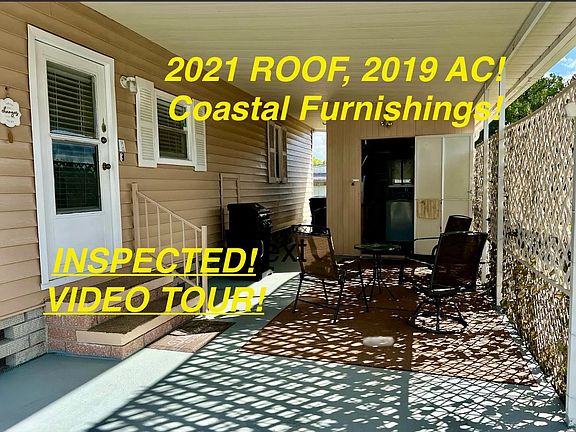 Colony Cove South Section. Age qualified 55+, large dog/golf cart friendly, resort lifestyle community along Manatee River. Homes are on leased lots; move in upon park approval! Hurricane survivor since 1976! FURNISHED! 2BED/2BATH/1FLEX! FLEX bonus rooms can used as extra bedroom, office/den/game/hobby room. ~~FEATURES/UPDATES: The home is currently insured by Citizens; A Four Point Insurance Inspection will be provided for buyer inspection that covers the next four items: ~ROOF: 2021 All Weather TPO Roof (offers extra insulation for the entire roof) with transferrable warranty with fee ~HVAC: 2019 Rheem air conditioner, 2022 upgraded power supply, coil and ductwork ~PLUMBING: Rheem/Rudd water heater ~ELECTRIC: 2013 new breaker panel OTHER: ~APPLIANCES: New GE Washer/Dryer 2022. Kitchen; 2018 includes a side-by-side refrigerator ~FLOORS: Solid subfloors and quality laminate throughout! ~FURNISHED: Offered fully furnished with some turnkey supplies ~LOCATION: Quiet dead-end street on perimeter lot; mature shade tree, outdoor fire pit ~CARPORT/PARKING: 2 vehicles, anti-slip coated drive, plenty of room for patio seating ~SHED: 8x 10, washer/dryer, utility sink and work bench ~EXTERIOR: Vinyl siding with decorative 45 degree angles ~KITCHEN/DINING: Newer appliances, clean white cabinets and pantry. Dining has lots of natural light that is filtered by the faux wood blinds from the many windows that extend into living area. It has a custom built-in hutch style cabinet for extra storage. ~LIVING ROOM/FLEX ROOM: Natural light, wall mount TV and all the furniture is included! Just off the living room is the Flexible Use Room (10 X 18) can be used as an extra bedroom, office, studio or hobby room. It has vinyl windows, screens and finger tip up/down cellular shades. Ambient cool air or use the portable air conditioner to keep it cool all year long. ~BEDROOMS/BATHROOMS: -Owners bedroom suite includes the king sized furniture and wall mount TV. Dual closets; built-in storage drawers and en-suite bathroom. Separate vanity/sink and another large closet. Water closet: walk in shower and commode. -Guest bedroom is perfect for the queen size bedroom furniture plus has a big wall closet. Just across the hall is the large guest bathroom with shower/tub combo. Easily accessible: living area and the outside entrance. ~~MONTHLY LOT RENT: $1173.76 (market rate TBD by community; subject to change) covers all of the community amenities plus almost all other typical monthly expenses such as water, sewer, trash pickup, recycling, all property taxes plus lawn care. The active adult lifestyle is designed to help you enjoy the finer things in life! ~9 community buildings includes 4 meeting halls ~6 community pools ~2 fitness centers ~Over 20 ponds/lakes/inlets ~Marina on the Manatee River: 75 slips/boat trailer storage (nominal fee) ~Fishing pier, outdoor pavilion, fireplace ~Dog Park split big/little pups. 2 pets permitted up to 75 lbs with breed restrictions ~2 Nature Preserves: Micro-forest 1.5 acres with walking trails plus mangrove canals off river for kayaking ~Billiards Room ~ Arts/Crafts, game/card rooms ~Woodworkers Shop ~Libraries ~Pickle-ball, tennis, shuffle, horseshoe courts ~45+ miles of roadways for walking/riding ~24/7 roving courtesy patrol ~Partially gated ~Planned activities every day including holidays ~30+ clubs to join ~Golf cart accessible shopping plaza at Creekside Commons (Lowes, Aldi, Home Goods, Restaurants, Pet supplies plus more!) ~Live where everyone else goes on vacation! Florida MH Sales, LLC cannot guarantee/warrant the accuracy of information/measurements/condition of any property. Measurements are approximate. All homes are sold AS IS; personal or professional inspection is encouraged. Buyers assume full responsibility for obtaining all current rate of lot rent. Midway between Tampa and Sarasota; just minutes from the I-75 interstate in