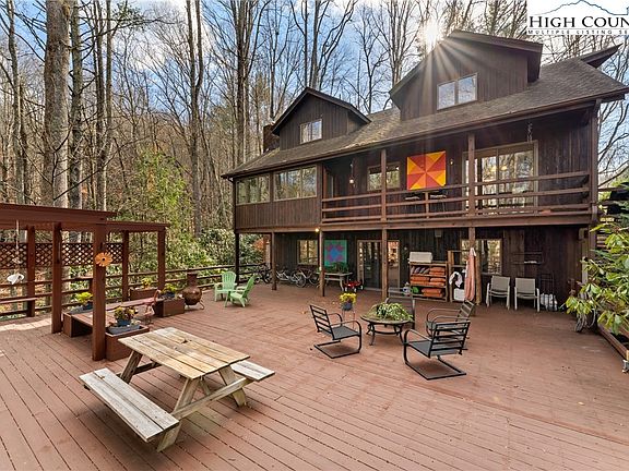 Charming and appealing, this rustic and artistic mountain home will be your oasis. Picture yourself out on the beautiful open deck entertaining with plenty of room for cooking out, surrounded by your lush container garden. Main floor living and primary suite, second floor has 2 bedrooms and a full bath, lower level has a half bath and would be a great recreation area as it opens to the deck. Super convenient carport is right next to the house. Established Old Keller Farms neighborhood is located in Foscoe with Valle Crucis Elementary just a few minutes away. Very convenient to Boone and Banner Elk and attractions for excursions or work. Excellent location for year round living or a second home ! Water filtration system by Dewey Wright. Exterior furniture/decorations stay. Energy Audit completed by John Kidda, ReNew Home, included in documents. Septic tank pumped and checked by Triple T March 2019. Heat sources include mini split, radiant ceiling, propane monitor, open flame propane stove and baseboard.