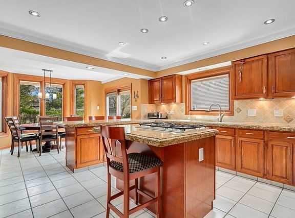 Welcome to your dream home in Buffalo Grove's prestigious Stevenson High School district! This stunning high-end home boasts luxurious finishes and unparalleled attention to detail throughout. Step inside and be greeted by the grand two-story foyer with hardwood floors that flow seamlessly into the open-concept main living area. The open first floor layout features hardwood floors and remodeled chef's kitchen with double oven and stainless steel appliances, high-end granite countertops, and bay windowed breakfast area are sure to impress. Two story great room boasts a gorgeous fireplace and attached 3-season room with a hot tub for 10 and built-in music are perfect for relaxing and hosting gatherings. The spacious living room features large windows that fill the space with natural light, while the adjacent formal dining room is perfect for hosting dinner parties. First-floor 2-story study/library with built-in wood shelves adds a touch of elegance to the home. The primary bedroom is your oasis! 2 walk-in closets. upgraded bath with heated floors, dual vanities, separate toilet, soaking tub, and steam shower is a luxurious retreat. Three additional spacious bedrooms, each with ample closet space, and a full bathroom complete the second floor. Finished basement with a full bath, 6 person steam room and bonus room great for a workout room or guest area. Outside, enjoy the beautifully landscaped yard with a large brick paver patio, perfect for outdoor entertaining and relaxation. Attached 2 car garage with 60 AMP EV charger. Tankless hot water heater and newer Pella windows with built-in blinds are both energy-efficient upgrades that can save money on utilities. Close to shopping, dining, and all that Buffalo Grove has to offer. Don't miss your opportunity to make this luxurious home your own!