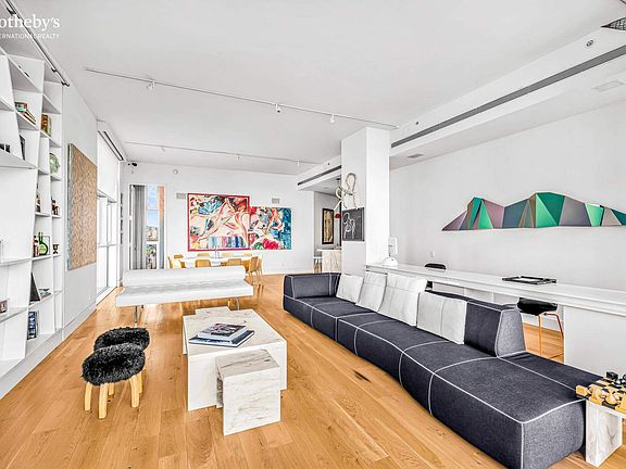 This sunny 2 bedroom/2.5 bathroom loft has unobstructed Hudson River views from its voluminous great room. Furnished with pieces by internationally acclaimed designers and adorned with art by leading Latin American artists, this apartment is move-in ready. Unique features include direct, key-locked elevator entry, massive floor to ceiling sound-proof windows, soaring ceilings and a private balcony, perfect for morning coffee. Interior finishes are top of the line and include a calacatta marble-clad chef's kitchen with Miele appliances and a full sized, in-unit laundry room. Two thoughtfully built-in desks compliment any work-from-home lifestyle, while the dining room seating accommodates a table of 10 for your entertainment needs.
