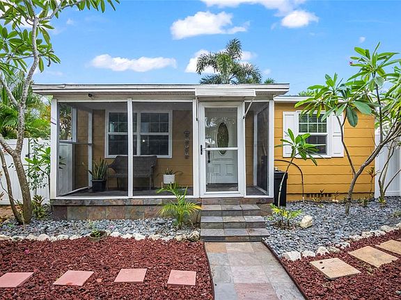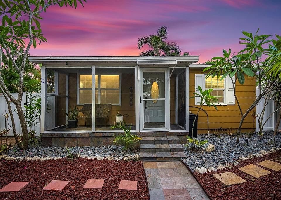 Tropical Paradise with Resort-Style Living ! Welcome to your private retreat in the heart of Saint Petersburg. This beautifully updated 2-bedroom, 1-bath home blends modern convenience with true Florida living. Surrounded by lush landscaping—including pineapples growing right in your backyard—this property was designed for both relaxation and entertaining. Enjoy a private screened front porch, unwind in the covered jacuzzi, or host gatherings under the gazebos, around the brick firepit, or at the outdoor grilling station. As night falls, the professional landscape lighting transforms the backyard into a breathtaking resort-style escape. Inside, you’ll find stainless steel appliances, granite countertops, wood cabinetry, a custom river rock backsplash, and no carpet throughout. The spa-inspired bathroom boasts a glass walk-in shower with a river rock floor. Additional features include an updated electrical panel, water softener, washer/dryer hookups in the attached garage, full vinyl fencing with three gates, and alley access with a paved parking pad. All of this is located just minutes from award-winning Gulf beaches, top restaurants, and the vibrant lifestyle of downtown St. Pete. Whether you’re searching for a year-round residence or a Florida retreat, this move-in-ready home is a rare find in a prime location.