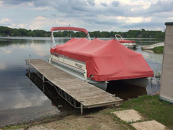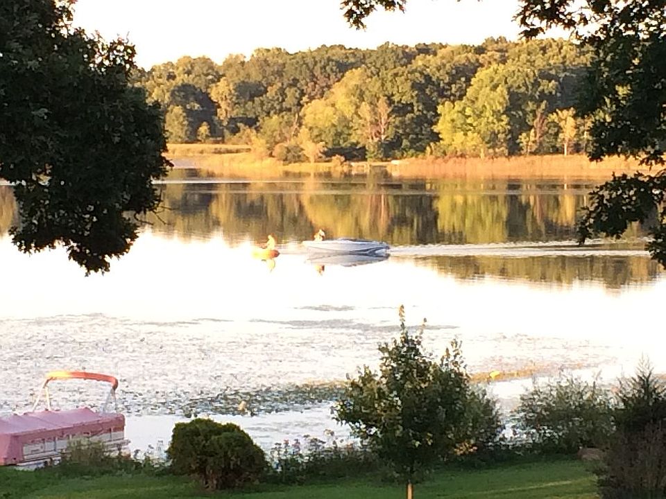 Farmhouse on almost six acres, built on top of hill overlooking Cedar Lake. Two bedrooms upstairs with large bath. Main floor has one bedroom, with additional office/bedroom. Large living room with lake views, two full bathrooms, parlor, front dining room and kitchen with rear dining room with vaulted wood ceiling. First floor laundry. Home is heated with dual stage ground source heat pump, two stage 95% natural gas furnace. Two car garage, two large barns and property backs up to wetlands. Great house for hunters and fishermen. Two driveways, one paved, one gravel that connect behind house.