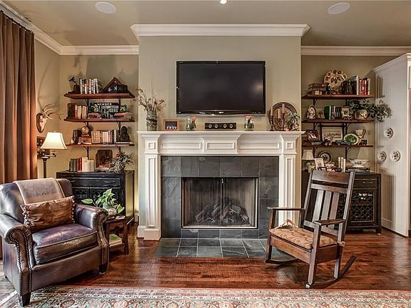 3 bed 2.5 bath TH within walking distance to River Crest Country Club! Antique brass hardware throughout, hand scraped floors, arched doorways, elevator capable, grt floorplan! Gourmet kitchen opens to den, granite counters, Jenn-Air stainless appliances. Lush green patio w fireplace. Master is generous w French doors to Juliet balcony.MB is serene w marble counters, jet tub,big shower, huge closet. Private office w built-ins. So pretty,come see!