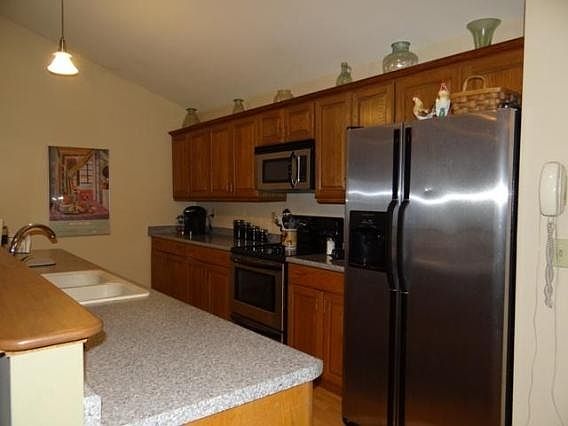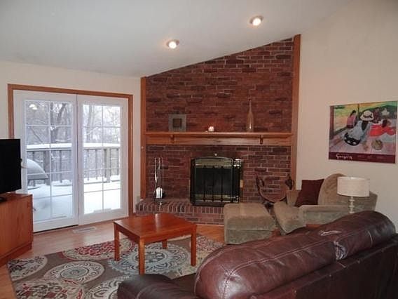 Open concept Hillside ranch condo tucked into a wooded setting with beautiful views of nature. Expansive living room with floor to ceiling brick fireplace. Dining area and kitchen combination perfect for entertaining. Patio doors to upper deck and a main floor master suite with whirlpool tub and skylight. Lower level features a second bedroom and bath, family room with patio access. Basement laundry with tons of storage space. Two and a half car garage with pull down attic.