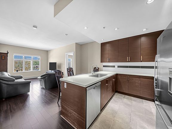 Welcome to the Altezza—this rarely offered 2-bedroom, 2-bathroom suite boasts a spacious, efficient layout with no wasted space, 9-foot ceilings, and stunning North Shore mountain views. The modern kitchen features sleek stainless steel appliances, quartz countertops, and a gas cooktop, while the spa-inspired bathroom includes a double-sink vanity and a relaxing soaker tub. Additional highlights include in-suite laundry, secure underground parking, a storage locker, and access to a large common-area terrace and party room—perfect for entertaining. Ideally located just steps from coffee shops, restaurants, public transit, the Eileen Daily Rec Centre. Pet- and rental-friendly, this home includes one secured parking stall, one storage locker, and visitor parking.