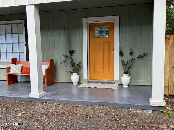 Private backyardOpen floor planTile wall behind mirrorCovered porchTile tub surroundDouble vanityLaminate flooring