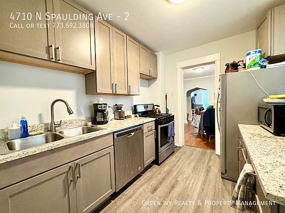Beautifully remodeled vintage 2 bed/1 bath 5 minutes from the Brown Line with HEAT INCLUDED. New kitchen with dishwasher, granite counters, and stainless appliances. Both bedrooms will easily fit queen size bed. Separate living and dining rooms with refinished original hardwood floors. Remodeled bathroom with vintage tub and hex tile. Enclosed back porch for extra space. Window AC units included. Radiator heat included - tenant just pays electric and cooking gas. Easy street parking (a rarity in the neighborhood). FREE laundry on-site. Pets negotiable with owner approval and one-time pet fee. Tenant pays cooking gas and electric. Available 9/1! Green Ivy Property Management