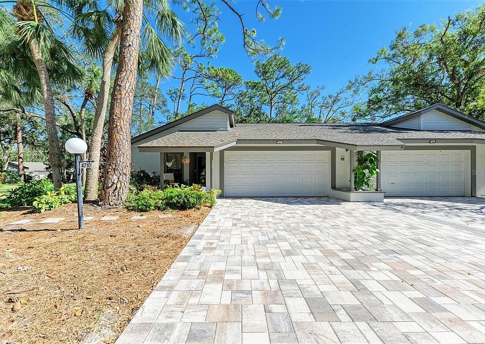 Don't miss this one. Located in Oak Forest surrounded by beautiful mature Oaks and Pines. This unit sits in a quiet cul-de-sac on the west side of the complex in a private setting. This unit has been updated and ready for a new owner. This villa boasts large bedrooms, vaulted ceilings with sky lights and no stairs, Everything is on one floor making it easy to navigate. Beautiful laminate flooring throughout the home, stylish Kitchen cabinets, stone countertops in Kitchen and tastefully decorated throughout. Partial kitchen wall removal offers openness along with privacy in the kitchen. Bedrooms are split for privacy as well and each with its own bath. Plenty of storage in these units and in the attic. Large 2 car garage with new hurricane rated garage door. Screened lanai in the rear of the unit with a greenbelt view. Large covered lanai in the entry area perfect spot to enjoy the outdoors. The Oak Forest complex has undergone a complete transformation over the last 3 years, with new roofs, new paint and new driveways. Live here year round or as a winter retreat. Oak Forest is a hidden gem in one of Sarasotas best locations. This complex is close to everything, 10 minutes from the beaches and a short ride to downtown shopping and theaters. Easy to Show.