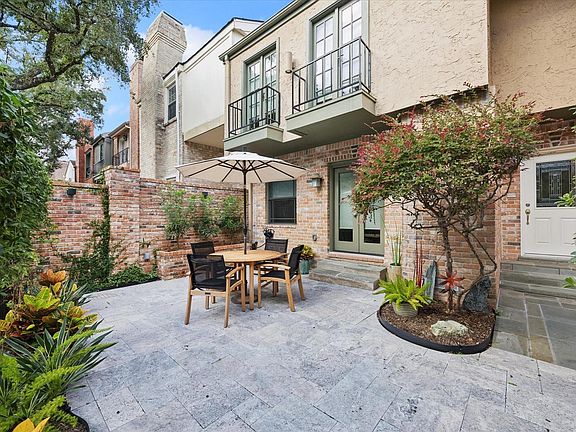 Nestled in a gated enclave on a tree-lined street, this beautifully updated home features soaring ceilings, large windows, natural light, spacious formals, and a neutral palette. A rare expansive private patio welcomes you. The formal dining room flows seamlessly out onto the patio and lies adjacent to the elegant white kitchen clad with granite countertops. The living room boasts vaulted ceilings, a balcony, fireplace, and bonus dry bar. Upstairs the elegant primary suite boasts a zen-like bathroom and walk-in closet. Two ample secondary bedrooms are serviced by two pritstine bathrooms and the highly sought-after gameroom is perfect for enjoying movie time or Super Bowl Sunday. Centrally located within a stone's throw of the Galleria, Houstonian, and chic dining, this home has it all. Come tour today.