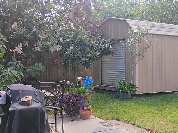 Updated home featuring a backyard storage building and multiple improvements throughout. The kitchen includes updated cabinets, an expanded pantry with rollout drawers, and a spacious island. Additional updates include a new storm back door with built-in retractable blinds, energy-efficient attic insulation, a solar attic fan, new windows, and solar screens to enhance comfort and energy efficiency. A former balcony has been enclosed to create additional living space, and the carport has been enclosed for extra storage. The property also features a smart thermostat that can be controlled remotely. The bedrooms and living room offer high ceilings. Neighborhood amenities include a park.