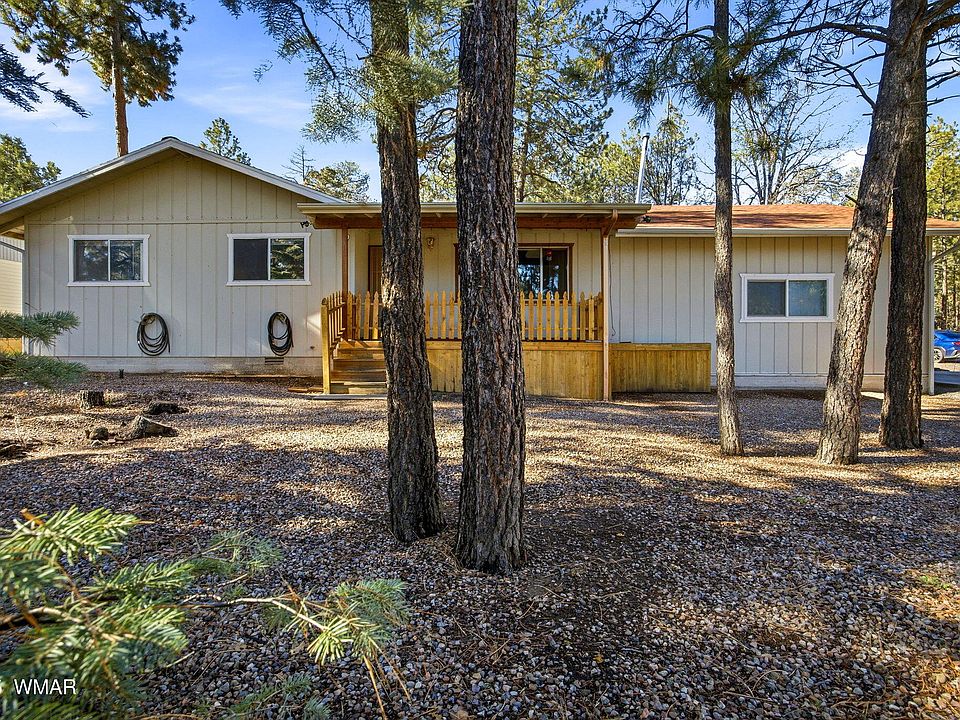 This gorgeous home is located in the beautiful neighborhood of Blue Spruce Estates. The home offers three spacious bedrooms, two fully remodeled bathrooms and an upgraded kitchen with granite countertops and stainless steel appliances. The great room has a beautiful fireplace to keep you cozy on those cold winter nights. Plus there is a very large bonus room with a pellet stove; perfect for theatre room, large man cave, craft room or another large bedroom. The home also offers a private backyard with an apple tree, garden area, covered patio and detached garage. There is also extra slab parking on the side of home. Don't miss out on this conveniently located home in Pinetop-Lakeside!