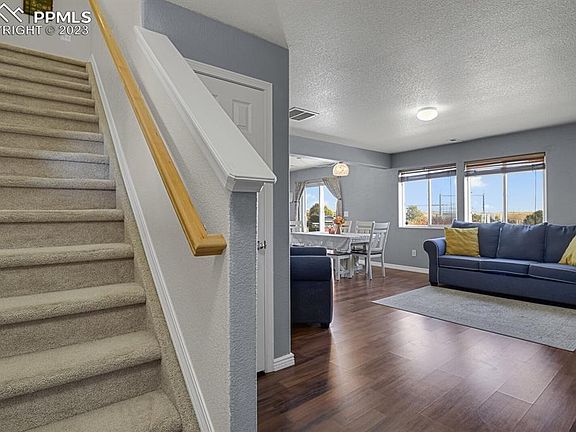 Discover the epitome of Colorado living in this exceptional single family home in the heart of Colorado Springs. This thoughtfully designed space stands out with its unique positioning—this rare lot features no rear neighbors, allowing for unparalleled privacy and unobstructed views of the natural beauty that surrounds it. The open concept floor plan seamlessly connects the living, dining, and kitchen areas, creating an inviting environment for both everyday living and the ultimate entertaining experience. Located conveniently off the kitchen is a recently updated half-bathroom. Step outside to a patio that awaits and a backyard with unobstructed breathtaking views. Ascending to the upper level, you'll find a spacious primary bedroom with a walk-in closet and two additional bedrooms that also feature walk-in closets. This home is centrally located and is close to Powers Blvd, Markshaffel Rd, and also Woodmen which gives quick access to I-25! This home is also in close proximity to military bases for added convenience! Embrace the Colorado lifestyle and make this extraordinary property your own today!