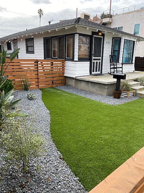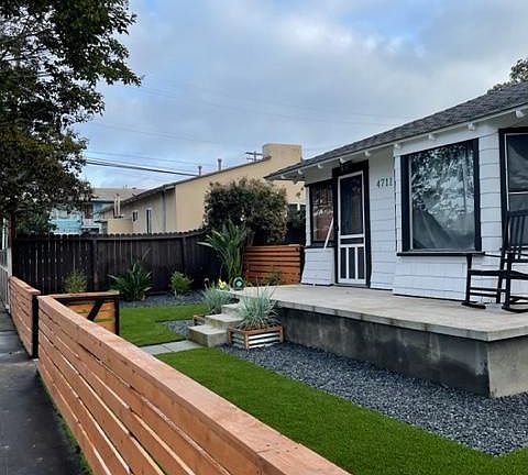 Charming 1909 cottage style OB HOUSE: Location, location, location! Come home from work and save on gas by WALKING EVERYWHERE! Grocery 1 block, restaurants 2 and 3 blocks, all the shops, bars, and restaurants galore on Newport Avenue just a few short blocks! Ocean Beach and the famous Dog beach is 4 short blocks! New kitchen incl: quartz countertops,appliances, cabinets. Vinyl plank flooring & fresh paint throughout. Groceries, restaurants, shops beach all w/in 4 blks ! Lrg lot: fully-fenced, low maint. turf front, back, & side yds. 2nd brick patio side yd is adorned w market lights while an inviting rear yd provides a functional & fun outdoor kitchen. Drought-tolerant plants, gravel & a drip irrigation sys. make yd maintenance a cinch. Your own dedicated off street parking area provides easy access to a walkin storage bldg, providing plenty of room for storing surfboards, workshop items,etc.. Inside, you find a renovated primary bedroom with a walk in closet, & a large ensuite bathroom including a gorgeous shower, marble-topped vanity and updated tile. The modernized open concept floor plan combines the kitchen and living area, showcasing new appliances and shaker cabinetry with custom drawers for spices, tupperware, and cutlery. Full Second bath shared between two good sized bedrooms, wainscotting, built ins with tons of light and windows! Want more? A walk-in pantry, cedar lined window seats, built in storage galore and full laundry are also in unit! Video can be found on You Tube by typing in 4711 Muir Avenue San Diego, CA 92107 Who doesn't want to live 4 blocks from the beach & use this cute yard w/market lights to host BBQs? It's adorable & a must see! Small pets will be considered. Payment for all bills (including water) required. Landscape upkeep is required. *Tenants must submit application through SmartMove by Transunion for income, background, and credit checks.Please contact the manager via Zillow to do so online. No cosigners. Qualified tenant with good credit and verifiable credit only. Tenant is responsible for all bills. Upkeep of landscape also responsibility of tenant. Pet approval required; as well as Renters Insurance specifying pet. ABSOLUTELY NO SUBLETTING & NOT INTERESTED in SUBLETTING! May have earlier availability continue to check back.