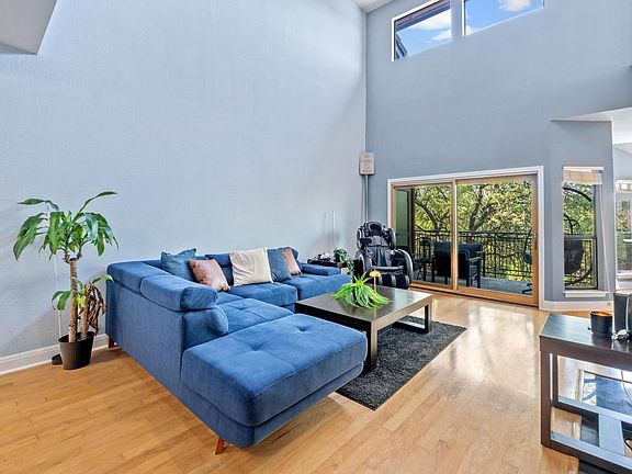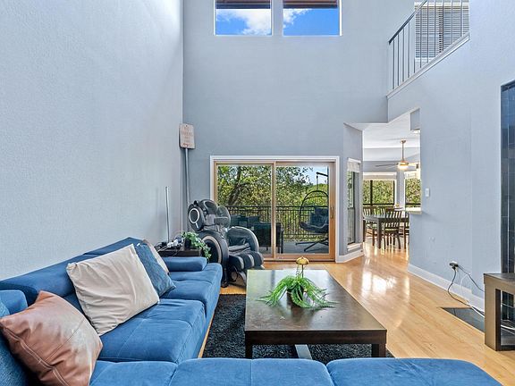 This is a quiet, stunning, stylish upper-level loft condo with wooded views from the living and dining rooms. The living room features high ceilings, built in bookcases and a fireplace. The intimate first floor balcony opens out onto a wooded glen filled with wildlife. The primary suite on the a second floor has a 2nd fireplace and provides a stunning panoramic view of the Stillhouse Nature Preserve. Wood-plank floor is found in the living room, dining room, and both bedrooms. The condo has 1 assigned carport space plus a reserved open parking space. This condo is convenient to Highway 183, MoPac, Loop 360, the Arboretum, Gateway and Domain shopping areas, as well as Q2 Stadium.