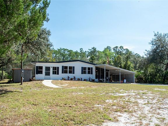 Prepare to be amazed at this 5 bedroom/ 2 bath home on almost 2 acres of property with lots of wildlife. TWO separate lots included in the sale. Parcel #1-17-28-0100-000-06100 is second lot. Watch for the DEER next door on the extra lot they hang out there often. There are so many NEW and great things to tell you about this property. NEW tie downs to bring it up to current codes, Roof 10 yrs old, AC 6 yrs old, NEW range, dishwasher, microwave, electric water heater and almost New fridge. NEW pump and tank for the WELL, NEW power pole, power box and wiring to the home. CVPC Pipes, newer electrical panel, outlets and GFI's and LED lights throughout. DETACHED GARAGE/WORKSHOP 576 SQ FT built in 2008, Porch wraps around side to the back and is 636 SQ FT. Florida SCREEN ROOM is 216 SQ FT. NEW LVT Vinyl and carpet flooring. Kitchen has beautiful wood cabinets with accenting backsplash and you wont believe the storage. The best part of this property is the property is wooded and so PEACEFUL. Come out to see it today - don't expect it to last long.