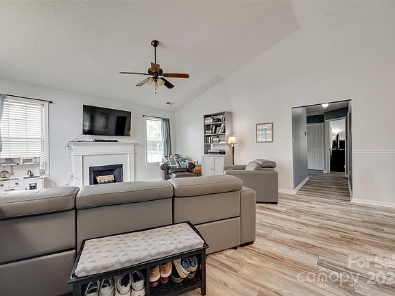 Charming ranch, meticulously maintained, in desirable area. Home is located on a large lot with a big, level yard that's completely fenced in. Newly remodeled kitchen with custom cabinetry, plenty of storage, subway tile walls, and modern floating shelving, both bathrooms, and flooring updated in 2022. Bedroom with carpet replaced in 2023. Gorgeous floors throughout rest of house are LVT waterproof laminate. Open floor plan with spacious living room, dining area and galley kitchen. Vaulted ceiling in living room area. Main bedroom features walk in closet, separate shower and garden tub. Large storage shed. Cozy patio area off kitchen/dining area for outdoor entertaining. Approximately 18 mins from Bank of America stadium and Uptown, 20 mins to Charlotte Douglas International Airport, 8 mins to Concord Mills. Located just minutes away to a variety of shopping and dining. Sellers keep 16 ft boat and trailer in garage when not in use, will be removed soon.