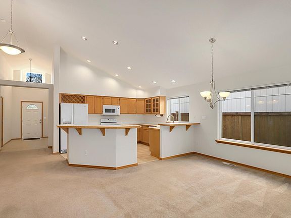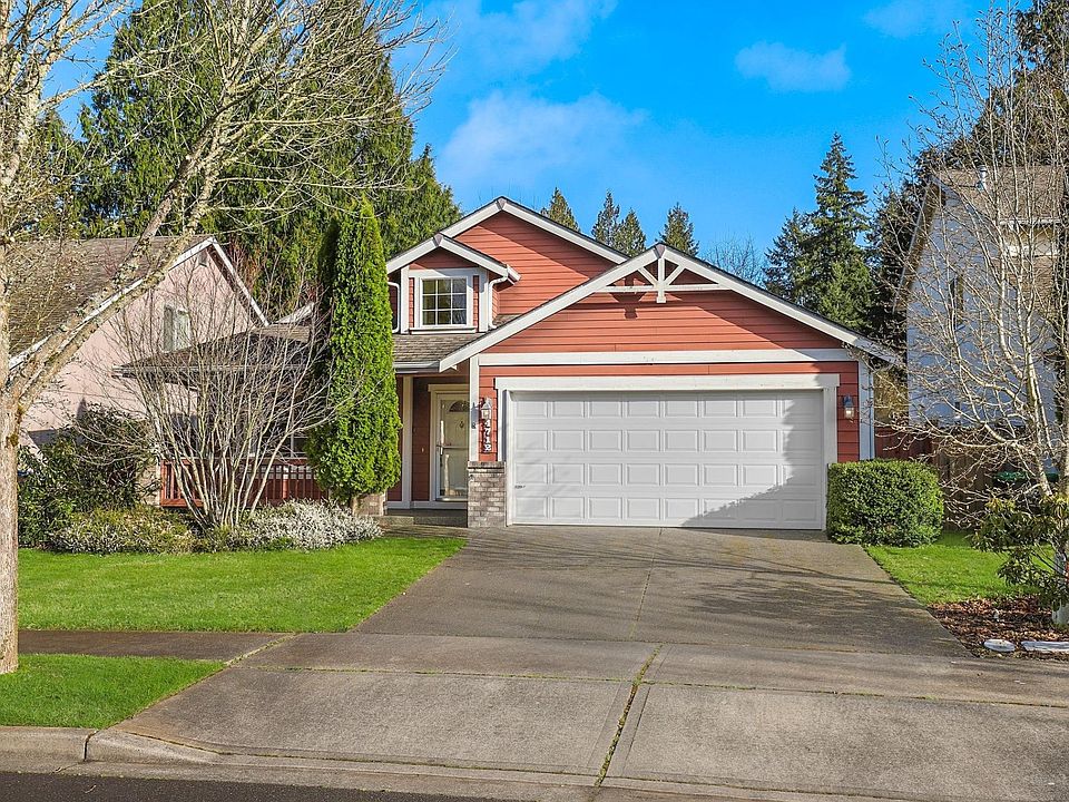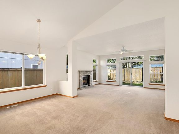 This rambler home has 3 Bedrooms, 2 bathrooms, open concept living room, dining and kitchen. Kitchen appliances include Refrigerator, Stove / Oven and Dishwasher. Laundry room with Hookups for washer and dryer. Neutral colors throughout the home. Gas Heat/Hot Water/Gas fireplace. Two car garage with garage door opener and a Fenced backyard. Close to shopping, parks and easy access to I-5. Has A/C.