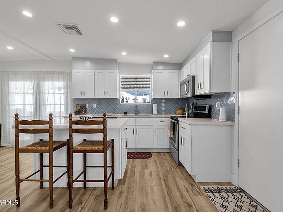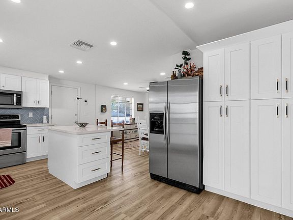 This beautiful fully furnished remodeled 4 bedrooms/3 baths single level home features modern wood look flooring throughout, a gorgeous white kitchen with quartz counter tops, custom backsplash, stainless steel appliances and so much more. The living room has a nice large fireplace with a white painted brick wall, a true focal point of the room. The rest of the home features 4 nice-sized rooms and upgraded bathrooms. The exterior has a large, covered patio with low maintenance landscaping. The property is located walking distance to Grand Canyon University and close to shopping & I-17 freeway access. This home is truly amazing, you will not want to miss this one! House is furnished, option to be removed if tenant does not need!