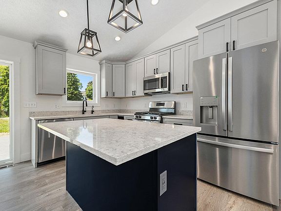 This nearly-new home with three fully-finished levels is conveniently located just minutes from downtown Traverse City in Stafford Meadows Subdivision off East Silver Lake Road. There are lakes, parks, and hiking trails nearby. Interlochen Center for the Arts is about a 15-minute drive west. The open-concept main floor living area is light-filled and features an island kitchen with granote countertops and SS appliances; a doorwall to the composite rear deck; the primary bedroom with a walk-in closet and a deluxe bath; a powder room, and a laundry room. The upper level has two bedrooms with generous closets and a tub and shower combination bath. The lower level features 9-foot ceilings, can lighting, daylight windows, and a roomy yet cozy gathering space with a gas fireplace for winter comfort. Also on the lower level is a fourth bedroom with a tub and shower combination bath. The mechanical room has storage space. There are solid-core 6-panel doors throughout this home. The lot is pie-shaped and there is a timed irrigation system. Pleasant front porch with can lighting. Generous garage with room for storage.