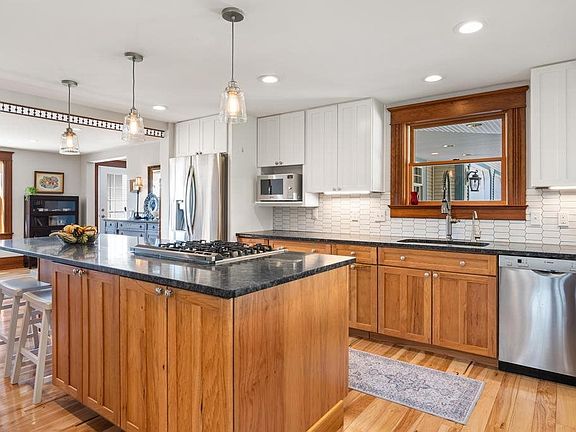 Sealed storage roomLarge islandApple treesNine acresGenerous pantryWood floorsWelcoming front porch