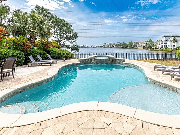 Welcome to this stunning lakeside retreat offering the perfect blend of luxury and tranquility. Nestled along the serene shores of the lake, this magnificent property boasts a spacious layout with four bedrooms and three baths downstairs, complemented by three bedrooms and two baths upstairs to allow for ample space for everyone. As you step inside, you'll be greeted by a grand foyer that leads you into the heart of the home. The main level features an expansive living area, ideal for entertaining guests or relaxing with family. With ample natural light streaming in through large windows, every corner of the house is bathed in warmth and brightness. The gourmet kitchen is a chef's dream, complete with high-end appliances including a gas cooktop range with double ovens. Adjacent to the kitchen, the dining area offers picturesque views of the lake, making every meal a delightful experience. Conveniently located on the first floor with patio and pool access, the primary bedroom provides a peaceful sanctuary.  Each guest bedroom is thoughtfully designed with comfort and style in mind.  Step outside to discover a private oasis perfect for outdoor gatherings, featuring a lake-front pool and hot tub.  Whether you're lounging by the pool or watching the game fireside with friends, this backyard paradise is sure to impress. With its prime location and Destiny East's desirable amenities, including a large pool, two lighted tennis/pickle ball courts, a clubhouse with a gym, party room and theater, this home is a rare opportunity.  Whether you are seeking a second or primary home or investment property, this incredible property is sure to exceed your expectations.