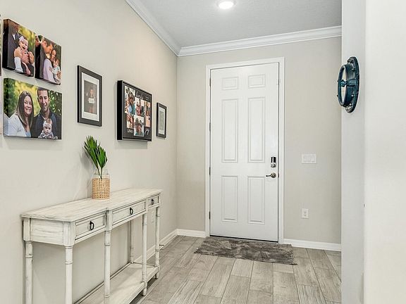This immaculate 4 bed/3 bath home in desirable Egrets Landing full of swoon-worthy upgrades is sure to please. Wide plank tile creates a foundation for style, while luxury lighting, crown moulding, & coffered ceilings add elements of design that catch your eye above. It is truly elegance from the ground up! The gourmet kitchen features a large island, glass top stove, & double wall ovens. An open layout connects it to the great room, creating a hub for gathering & relaxing that can't be beat. Two large tri-fold sliders open up to a screened lanai expanding the living space even further. All of the bathrooms are outfitted to impress. The primary includes double vanities with a rain shower head in the oversized shower. With hurricane shutters & smart home enhancements this home has it all!