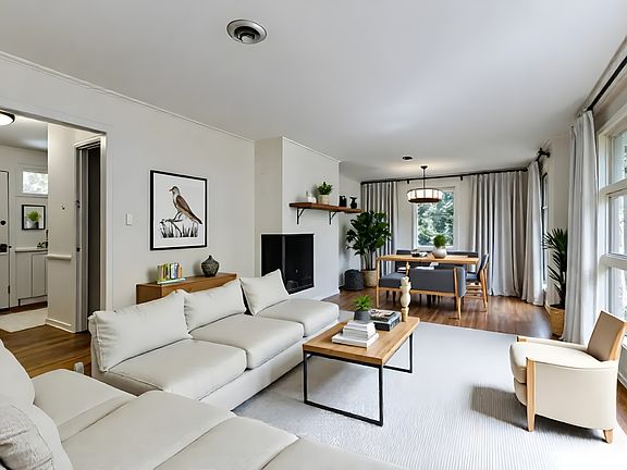 Tucked beneath a canopy of mature trees on a serene 0.43-acre lot, this charming stone cottage in the heart of Abbay Hall blends mid-century character with modern comfort. The main level welcomes you with a sun-drenched living room lined with picture windows and original hardwood floors, flowing seamlessly into a retro-style eat-in kitchen with tile counters and ample cabinetry. Two comfortable bedrooms and a full bath complete the main floor, with generous natural light throughout the home.
