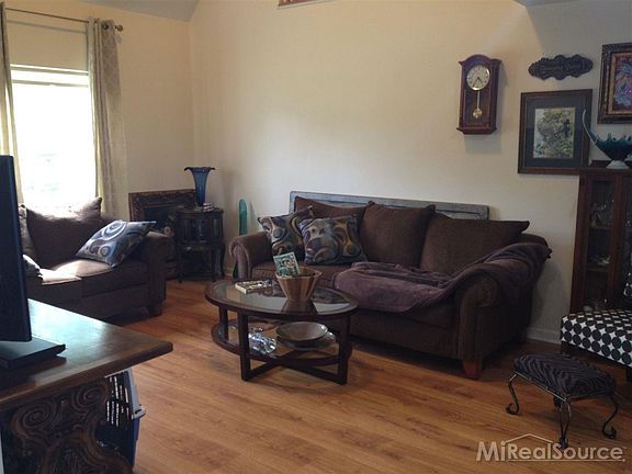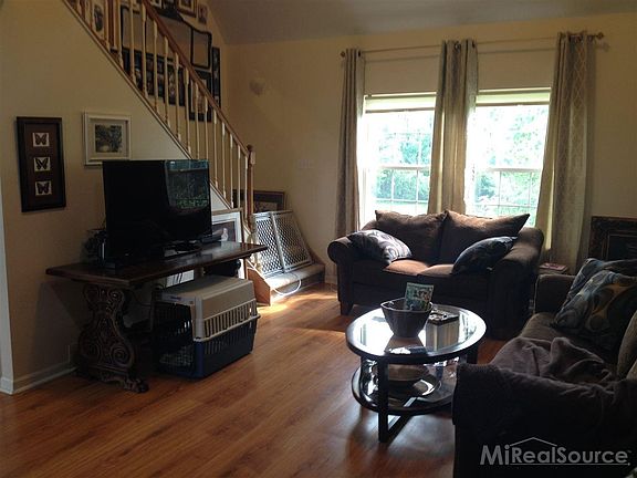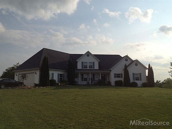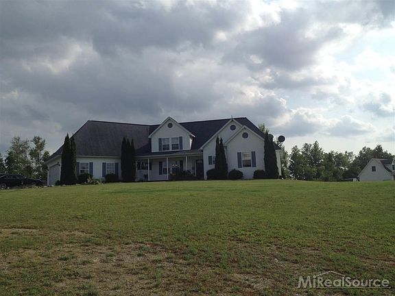 Beautiful Setting! House sits on the back of property overlooking 2 ponds (one owned!) landscaped with ornamental trees and shrubs. Inviting GR complete with laminate floor, open oak railing staircase, vaulted ceiling, fan and recessed lights. Loft area with tray ceiling (could be walled off). Huge walk-in attic perfect for storage. Spacious eat-in kitchen boasts oak cabinets, corian counters, pantry, 2 lazy susans, appliances & door to covered deck. Master BR features walk-in closet plus full bath with spa tub. First floor laundry w/tub. Walkout daylight basement has wet bar, full bath, additional BR or office and loads of storage. Door from basement leads to flagstone patio. 1200 sqft pole barn, gravel floor - no electric. 24' above ground pool...equipment included.