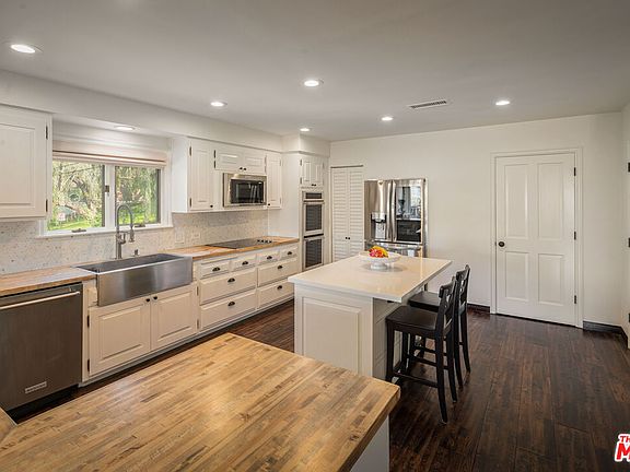 Discover your perfect sanctuary in the heart of Woodland Hills, where sweeping views of the valley and mountains create an unforgettable backdrop. Nestled high above the San Fernando Valley and just moments south of Ventura Blvd, this striking multi-level treehouse-style residence combines imaginative design with a natural, tranquil setting. Inside, warm and expansive living areas welcome you with distinctive charm. The main living room, anchored by a cozy fireplace, seamlessly opens to one of several outdoor decks-ideal for soaking in the scenery and fresh hillside air. Offering five generously sized bedrooms, including two versatile suites, the home provides ample room for relaxation, creativity, and entertaining. The entryway reveals a private patio and sparkling pool, introducing a modern retreat that carries the serene spirit of nearby Topanga Canyon. A chef-inspired kitchen offers abundant storage, a walk-in pantry, and a thoughtful layout designed for both lively gatherings and quiet evenings. The open-concept living and dining areas enhance the sense of flow and connection throughout. The primary suite is a true escape, featuring its own fireplace, a private deck with sweeping views, custom walk-in closet, and an elegant en suite bath with dual vanities and a spacious glass shower. Outdoors, mature avocado, orange, and persimmon trees dot the lush landscape, while multiple decks, stately oaks, and curated outdoor spaces invite relaxation at every turn. Enjoy the shimmering pool by day or retreat to the spa beneath the stars. Additional comforts include HVAC for year-round ease, a two-car garage with direct entry, and guest parking. Set on a quiet cul-de-sac along one of Woodland Hills' most coveted streets, the home offers both privacy and convenience. Beyond the property, Ventura Blvd provides an energetic lifestyle filled with inviting cafes, boutique shops, and diverse dining options. The neighborhood also boasts highly regarded schools, convenient services, and a strong community spirit expressed through farmers markets and seasonal events. For outdoor enthusiasts, Serrania Park trails, the Backbone Trail, and nearby golf courses ensure endless opportunities for recreation. Whether you're drawn to the vibrant energy of the city or the calm embrace of nature, this exceptional Woodland Hills residence offers the best of both worlds-ready to be called home.
