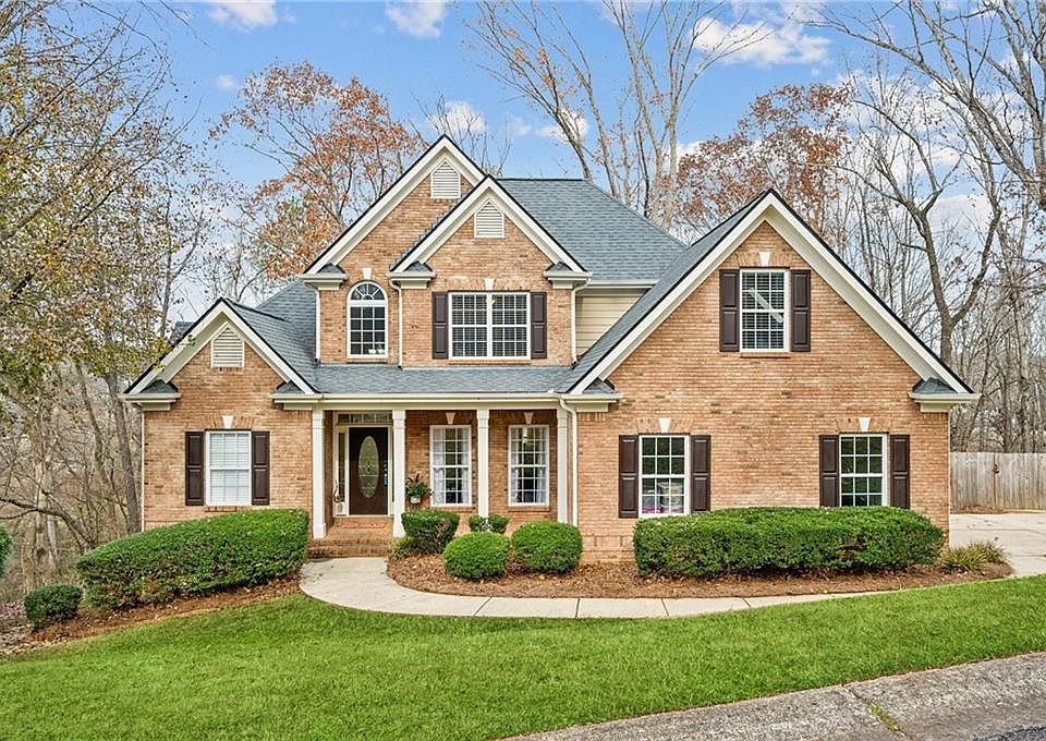 Step into this classic brick home that exudes timeless elegance and modern convenience. The inviting front porch, adorned with transom and sidelights, welcomes you into a stunning 2-story foyer. The spacious dining room and family room boast a dramatic 2-story stacked stone fireplace, complemented by large windows that fill the home with natural light. The open floorplan is perfect for entertaining, featuring a large eat-in kitchen with a bay window, beautiful wood cabinets, stainless steel appliances including a double oven gas range, and a convenient pantry. Wood floors flow throughout, adding warmth and character to the space. Step outside to a large wrap-around deck overlooking the fenced backyard—a perfect space for outdoor gatherings. The main-level master suite is a retreat, showcasing a trey ceiling, a spacious master bathroom with a double vanity, a tiled shower, a separate soaking tub, a water closet, and a large walk-in closet. Upstairs, you’ll find two additional bedrooms and a large flex space that could serve as a third bedroom with easy attic access. The full daylight basement offers endless possibilities, from a home theater to a workshop or extra living space. Renovated in 2014, this home blends classic charm with modern upgrades. Located in a friendly neighborhood with unique homes, a community pool, and close proximity to I-985, I-85, shopping, dining, parks, and Lake Lanier, this property is the perfect place to call home.