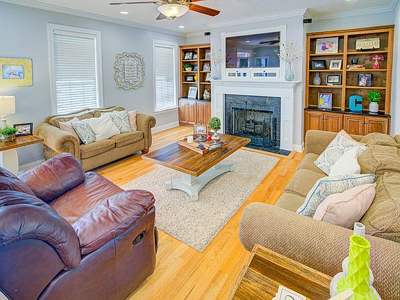 #Mr.&Mrs.Clean This 3 bedroom home has so many upgrades. Sit on the rocking chair front porch(5x23) that over looks the nicely landscaped yard. This home has true hardwood floors & carpet throughout. The great room features a gas fireplace with tile surround & wood hearth, custom built in for TV, & custom built in book shelves. The kitchen has custom cabinets, travertine back splash, granite counter tops, kitchen island, stainless steel appliance package, & bar top seating for 3 that over looks the great room & breakfast area. The sun-room has stained concrete finish with ship lap walls. It also over looks the pool area & out door kitchen.The master bathroom has dual vanity sinks, culture marble tops, soaker tub, & custom tile stand up shower. The bonus room upstairs has a ship lap accent wall & walk out attic for storage. The outdoor kitchen includes green egg, hotplate,& over size custom grill. There is also an in ground pool with a nice deck area around.