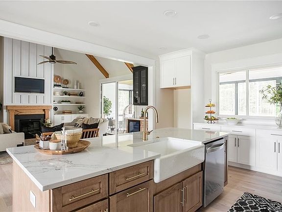 Pressured treated screen porchVaulted ceilingsTankless water heaterStained wood beamsPot filler over cooktopOversized garage